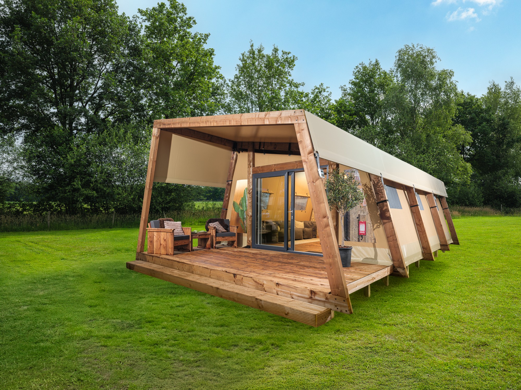 De Nature Lodge is een nieuwe accommodatie binnen het assortiment van CampSolutions. Deze lodge combineert een eigentijdse uitstraling met praktisch gebruiksgemak en sluit aan bij de groeiende vraag naar luxe familietenten in de recreatiesector. De Nature Lodge is ontworpen als comfortabele verblijfsoplossing voor uiteenlopende doelgroepen.
